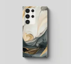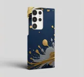 Questo elegante sfondo astratto presenta una combinazione di spruzzi d'oro, d'argento e di blu marino, creando un design di grande impatto visivo, ideale per essere utilizzato come carta da parati o arte digitale.