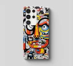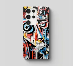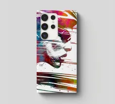 Vivida illustrazione astratta di un volto umano resa con pennellate audaci e vibranti spruzzi di rosso, blu, giallo e nero. I dettagli espressivi evocano emozioni e creatività, fondendo arte moderna e realismo.