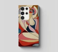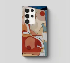 Quest'opera d'arte presenta una composizione contemplativa e introspettiva con un mix di forme geometriche e organiche. La tavolozza dei colori comprende blu, rosso e beige, creando un senso di equilibrio e armonia. La disposizione ponderata di forme e colori ne fa un'opera accattivante.