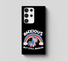 Un simpatico unicorno con una criniera arcobaleno siede circondato da stelle, accompagnato dal testo umoristico "Oggi non posso fare il cervello, ho il muto". L'immagine è collocata su uno sfondo semplice.