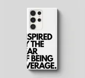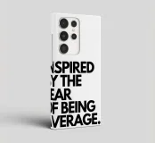 "La frase "INSPIRED BY THE FEAR OF BEING AVERAGE!", impilata su più righe e resa con un carattere sans-serif nero in grassetto su uno sfondo bianco pieno, trasmette un messaggio di ambizione e di spinta a eccellere",