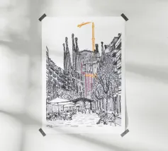 Le nuvole che si stendono sulla città di Barcellona sono dinamiche. Guardando dal tetto del mio appartamento, posso vedere il mare scintillante oltre la città sulla destra. Davanti a me si apre un mondo diverso che non si può vedere dalla strada. Questo è un disegno che ho fatto dal vivo.