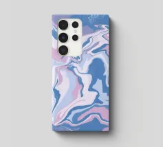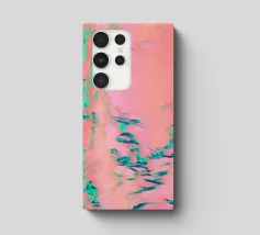 Splendida arte astratta fluida, ispirata a una tranquilla spiaggia rosa, con flussi di colore in blu acqua e rosa pastello.