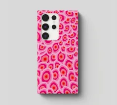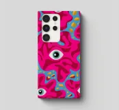 A mesmerizing and psychedelic pattern featuring repeating eyes amidst swirling, organic pink and magenta shapes. This bold and surreal artwork is both hypnotic and intensely energetic.