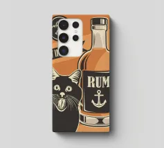 Illustrazione di metà secolo di una bottiglia di Rum, con tanto di balena :)