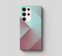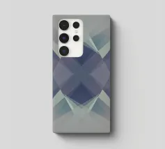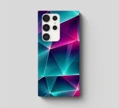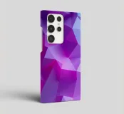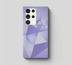 Una vibrante composizione astratta presenta una miscela di tonalità viola e blu, formando forme geometriche nitide e transizioni fluide che creano profondità e movimento.