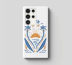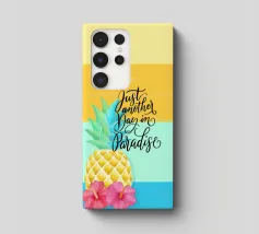 Siete pronti per una vacanza e avete voglia di sole, mare e spiaggia. Allora questo motivo con alba, palme, cocktail rinfrescanti, ananas fresco e conchiglie è proprio quello che fa per voi. Detto umoristico per l'estate. Concedetevi più spiaggia e preoccupatevi di meno.