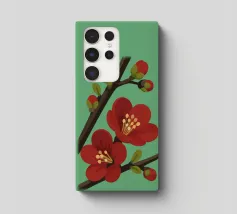 Japanische Zierquitte ( Chaenomeles japonica), Frühlingsblüte, Makroaufnahme, Zweig mit Blüten