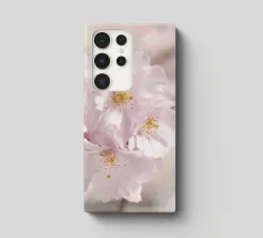Delicate spring blossoms on a branch bathed in warm light. Soft focus and natural colours emphasise the lightness and freshness of the scene.