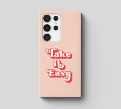 Un vivace disegno tipografico in stile retrò con la frase "Take It Easy" in grassetto, con caratteri ispirati agli anni '70. Il caldo mix di rosso, blu e verde menta con accenti di stelle aggiunge un'atmosfera giocosa e nostalgica, perfetta per un'estetica rilassata ed elegante. Un pezzo elegante e nostalgico che irradia calma e gioia. Creato da showmemars