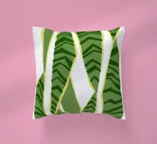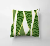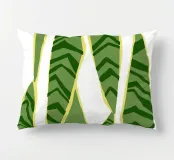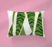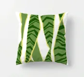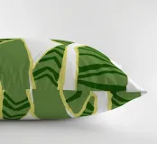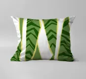 I motivi geometrici astratti a strisce verdi e gialle creano un senso di movimento nella composizione. Il disegno presenta elementi verticali di forma irregolare che suggeriscono un tema naturale.