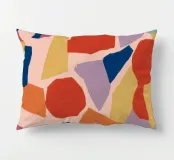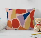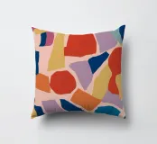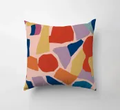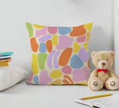 Un motivo astratto vivace e giocoso presenta forme colorate sparse come scaglie di terrazzo su uno sfondo neutro, creando un design festoso e moderno.