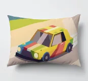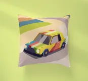 Illustrazione di un'auto colorata sulla strada con uno stile geometrico moderno.