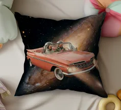 Un'immagine surreale di una piccola auto rossa alla deriva nello spazio profondo sopra la Terra. Simbolo del bisogno di fuggire, di andare ovunque, purché siate voi a guidare. Una metafora visiva per liberarsi, cercare una direzione o semplicemente riprendere il controllo in un mondo che non ascolta più.
