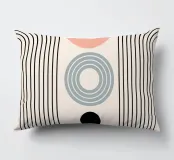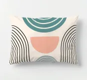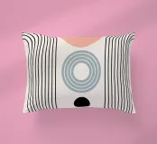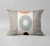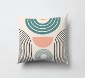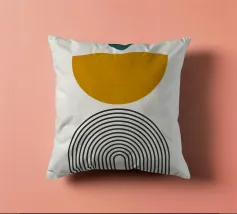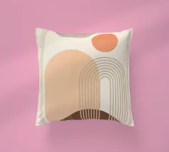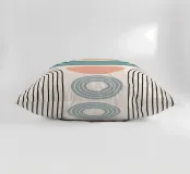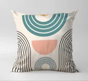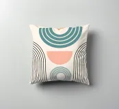 Le forme geometriche sono disposte in una composizione equilibrata con cerchi, archi e semicerchi in tonalità tenui. Il design è caratterizzato da un gioco di linee e forme che creano un senso di simmetria e armonia.