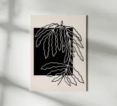 Minimalista ed elegante, questa line art botanica presenta un ramo fluente con foglie ondulate in grassetto inchiostro nero. Su un morbido sfondo color crema d'ispirazione vintage, il disegno combina una semplicità senza tempo con un tocco moderno. Il contrasto tra la delicata forma organica e lo sfondo chiaro e neutro crea un pezzo versatile che si adatta a interni contemporanei ed eclettici. Perfetto per aggiungere un sottile fascino ispirato alla natura al soggiorno, alla camera da letto o allo spazio di lavoro creativo.