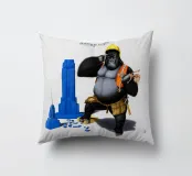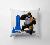 Illustrazione comica di una parodia classica della storia di King Kong. Lo scimmione costruisce l'Empire State Building con i lego, ma non sa cosa fare con Barbie.
