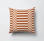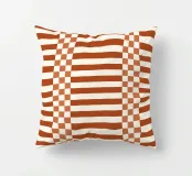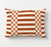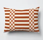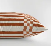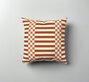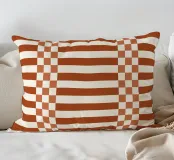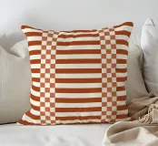 Caratterizzato da un'elegante miscela di quadretti geometrici e linee pulite nei toni dell'arancione bruciato, questo design conferisce un'accogliente raffinatezza e un fascino moderno di metà secolo a qualsiasi stanza o accessorio. Perfetto per gli amanti dell'arredamento eclettico e contemporaneo che apprezzano lo stile senza tempo con un tocco vivace.