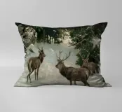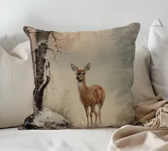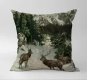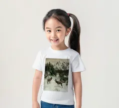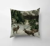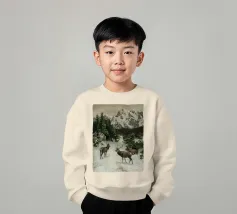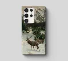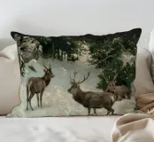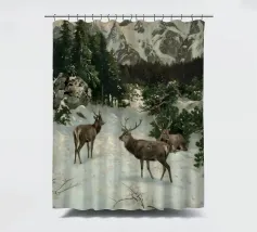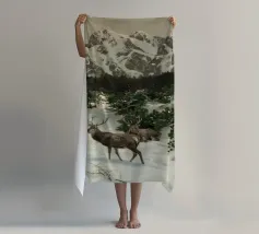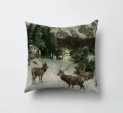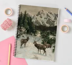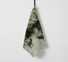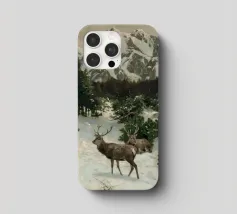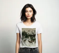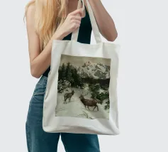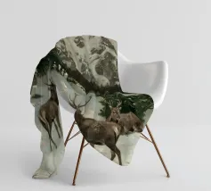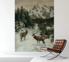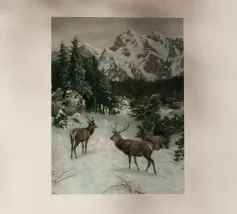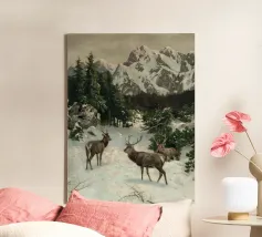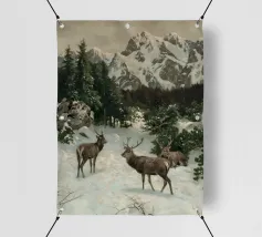 Un suggestivo motivo invernale: tre cervi si ergono maestosi in un paesaggio montano innevato, con abeti e cime sullo sfondo. I colori naturali e l'atmosfera tranquilla rendono questo disegno perfetto per gli amanti della natura e degli animali. Che si tratti di un murale, di un cuscino, di una tazza o di un poster, questo motivo porta il romanticismo invernale della fauna selvatica, l'eleganza e la tranquillità in ogni casa.