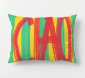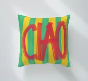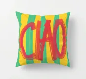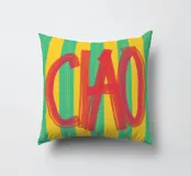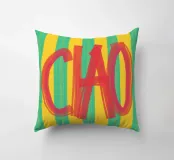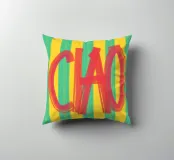 Un simpatico poster tipografico dal sapore italiano: la scritta "CIAO!" dipinta a mano in rosso vivace contrasta con lo sfondo a righe in giallo e turchese. Il mix di pennellate libere e colori retrò rende il disegno un perfetto richiamo visivo per cucine, corridoi o studi creativi. Un saluto allegro - forte, colorato e affascinante, mediterraneo.