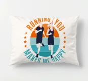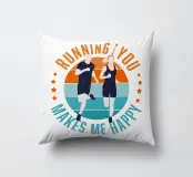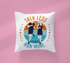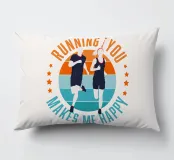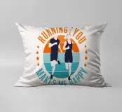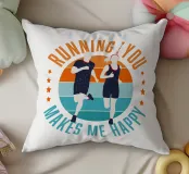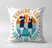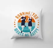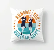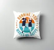 Per i partner che amano correre insieme. Lui e lei, che corrono in modo dinamico, abbinati a una bella tipografia. Bellissimo arancione, combinato con blu medio e turchese. I corridori sono in blu scuro a contrasto e hanno piccoli accenti rossi.