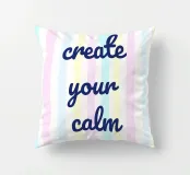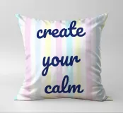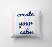 "Crea la tua calma" centrata su uno sfondo a strisce verticali in morbidi colori pastello. Semplice design clipart senza ombre, minimalista e chiaro - ideale per vibrazioni calme ed equilibrate con un look moderno.