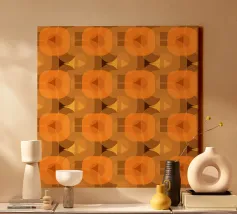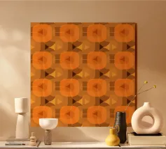 Un motivo ispirato agli anni '70, un'opera speciale pensata appositamente per mobili e oggetti d'arredo, questo colore arancione è stato un classico della pop art e dell'era psichedelica, un motivo perfetto per dare un tocco vintage e pop con classe ai vostri spazi di vita e di lavoro.