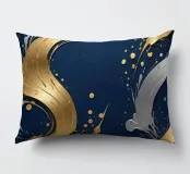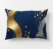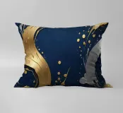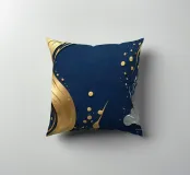 Questo elegante sfondo astratto presenta elementi d'oro e d'argento che si alternano ad accenti circolari su una ricca tela blu, creando un impatto visivo di grande effetto adatto a progetti creativi.