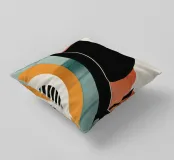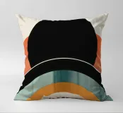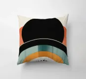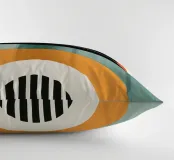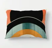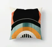 Questo design artistico combina il nero deciso e i toni della terra con le vibranti sfumature del blu e dell'arancione. Le forme geometriche chiare e gli archi creano un fascino moderno e retrò e si adattano perfettamente agli spazi scandinavi o minimalisti. Come murale, cuscino o poster, il motivo crea un accento elegante e aggiunge carattere e calore agli ambienti. Un elemento decorativo unico per gli amanti del design e dell'arte che apprezzano l'estetica moderna.