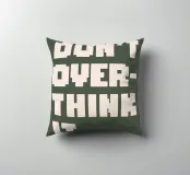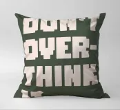 Un design minimalista con un gomitolo aggrovigliato di fili colorati che si dipana lentamente in una linea retta. La frase "Don't Overthink It" (Non pensarci troppo) è riportata in una tipografia pulita e moderna, che sfuma delicatamente dal grassetto alla luce per riflettere la calma chiarezza. Lo sfondo sereno in tenui toni pastello esalta il messaggio di semplicità e abbandono.