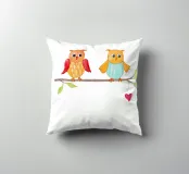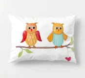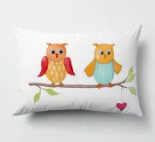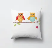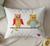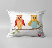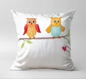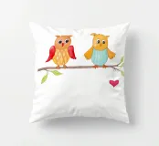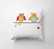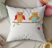 Simpatici gufi dipinti ad acquerello su un ramo con un cuore allegato.