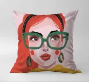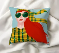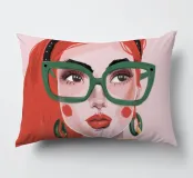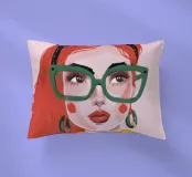 Questo vivace ritratto pop art presenta una rossa sicura di sé che indossa audaci occhiali verdi da gatta e un dolcevita giallo. Il mix di elementi retrò e moderni crea una divertente dichiarazione di intelligenza, stile e impavida individualità.
