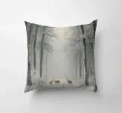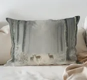 Questo suggestivo motivo invernale mostra una foresta innevata con alberi ad alto fusto, al centro della quale un piccolo gruppo di cervi si sofferma pacificamente. La leggera foschia conferisce alla scena un'atmosfera fiabesca e tranquilla che irradia calma e contemplazione. Perfetto per biglietti d'auguri natalizi, poster, calendari o come decorazione murale per la stagione invernale. Questa immagine trasmette la bellezza e la magia della natura in inverno.
