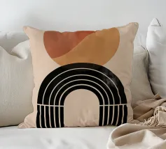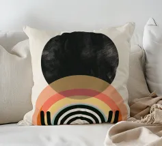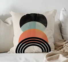 Questo disegno astratto combina colori pastello tenui in blu, arancione e beige con archi chiari e neri. Lo stile moderno e minimalista conferisce a qualsiasi ambiente un'atmosfera calma e armoniosa. Che si tratti di un murale, di un cuscino, di un poster o di tazze, questo motivo si adatta perfettamente ai concetti di vita contemporanea. Si rivolge agli amanti del design che apprezzano le forme chiare e i colori tranquillizzanti. Ideale per soggiorni, camere da letto e uffici moderni.