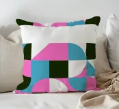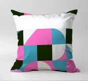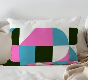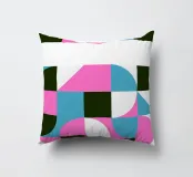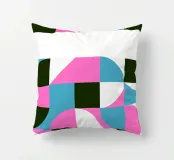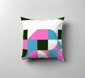Questo disegno astratto è un moderno puzzle di semicerchi, triangoli e quadrati nei vivaci colori rosa, turchese, bianco e verde oliva scuro. La composizione geometrica ricorda gli elementi Bauhaus, la modernità di metà secolo e la pop art. Potente, giocosa e assolutamente elegante. Una dichiarazione per gli appassionati di design.