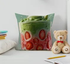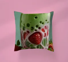 Un rinfrescante frullato verde menta con fragole fresche, servito in un elegante bicchiere, che crea una deliziosa e vivace delizia estiva.