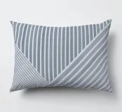 Disegno astratto con sezioni di linee bianche diagonali e verticali su sfondo azzurro, che creano un motivo geometrico dinamico. Ideale per progetti di arredamento moderno e design grafico.