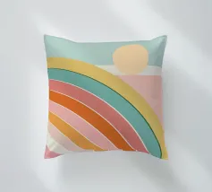 Questa delicata illustrazione mostra un arcobaleno in colori pastello con morbide sfumature di colore dall'azzurro al rosa, al giallo pastello e al verde chiaro. Le linee geometriche e le strisce strutturate danno un tocco moderno all'opera grafica e riflettono la natura. Un gioco armonioso di colori che irradia calma e gioia.