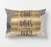 Arte grafica moderna in un'elegante veste dorata ed elementi tipografici. Un design che si adatta al motto della vita. SOLO BUONE VIBRAZIONI.