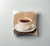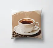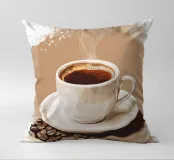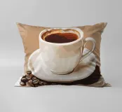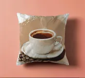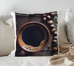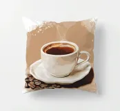 Una tazza di caffè nero su un piattino, circondata da chicchi di caffè sparsi - raffigurata in toni beige morbidi e caldi dal carattere pittoresco. L'immagine emana calma, concentrazione e piacere aromatico. Perfetto per gli amanti del caffè, per l'arredamento dei bar o per gli spazi di lavoro che hanno bisogno di promuovere un ambiente calmo ma elegante.