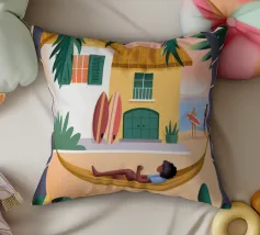 Immersa nel silenzio di un cielo color pesca, galleggia su un'amaca tesa tra le palme, senza peso, mentre il giorno scivola tranquillamente verso il tramonto. Le scimmie si appollaiano e giocano, le fioriture si avvicinano e l'intera giungla ronza con la comodità di non fare assolutamente nulla. È un momento fatto solo di luce del sole, di risate e di quiete, tenuto dolcemente tra le braccia del paradiso.