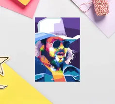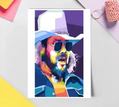 Hank Williams Jr. in WPAP (Wedha's Pop Art Portrait) è una rappresentazione vibrante e geometrica del leggendario cantante country. Questo stile artistico utilizza colori audaci e contrastanti e forme spigolose per creare un ritratto astratto e moderno, pur mantenendo le sue caratteristiche riconoscibili.