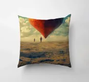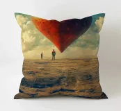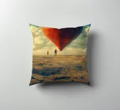 Un cuore colossale e consumato dalle intemperie fluttua serenamente sopra un vasto paesaggio incrinato, simbolo potente di un amore duraturo in un mondo desolato. Due piccole figure si ergono al suo cospetto, aggiungendo la scala epica e l'atmosfera cinematografica di questa opera d'arte surreale. Con i suoi toni vintage e le sue immagini che fanno riflettere, quest'opera è un invito alla conversazione e un tributo al grande viaggio dell'amore.