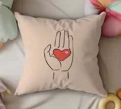 Un primo piano di una mano che stringe delicatamente il cordoncino di un grande palloncino color terracotta opaco, a forma di cuore. La composizione semplice e i toni morbidi e caldi creano un'immagine intima e un po' tenera, che si concentra sul legame tra la mano e il palloncino simbolico.