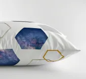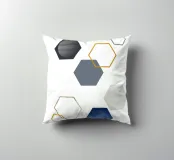 Forme esagonali di dimensioni variabili presentano immagini diverse, tra cui un pianeta e un cielo stellato. Gli esagoni sono disposti in modo sparso.