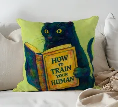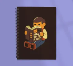 Una persona che legge un libro dal titolo "Come essere un gatto", un'arte per tutti gli amanti dei gatti.