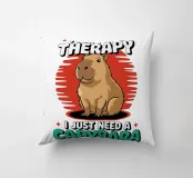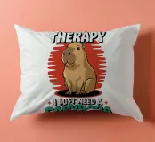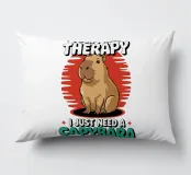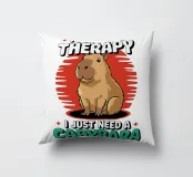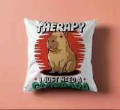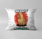 Un simpatico capibara si trova al centro di un disegno con il testo umoristico: "Non ho bisogno di terapia, ho solo bisogno di un capibara".