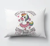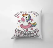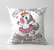 Un unicorno colorato vestito con un tutù danza circondato da stelle e cuori. Il testo in grassetto afferma con umorismo: "Non sono pazzo, preferisco il termine mentalmente esilarante".