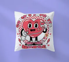 Una tazzina da caffè e un personaggio a forma di cuore sono raffigurati mentre si tengono per mano con la scritta "Ho bisogno di una sola cosa per riscaldare il mio cuore, il caffè".