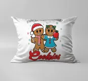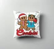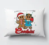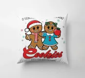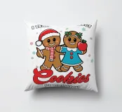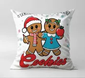 Due sorridenti biscotti di pan di zenzero sono vestiti a festa, uno con un cappello da Babbo Natale e l'altro con una mela in mano. La frase "Insegno ai biscotti piรน intelligenti del lotto" รจ stampata intorno a loro, aggiungendo un tema giocoso ed educativo.